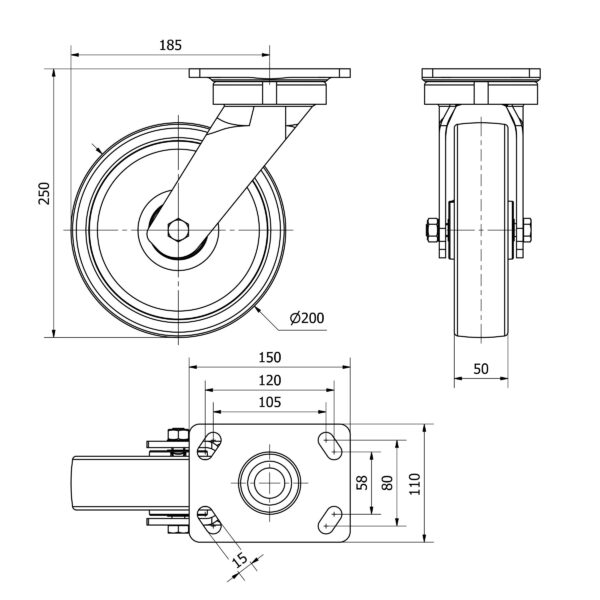 Rueda nylon-poliamida giratoria Alex diametro 200 mm. modelo 4-0145