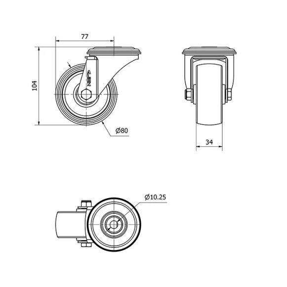 Rueda nylon-poliamida giratoria Alex diametro 80 mm. 2-0122