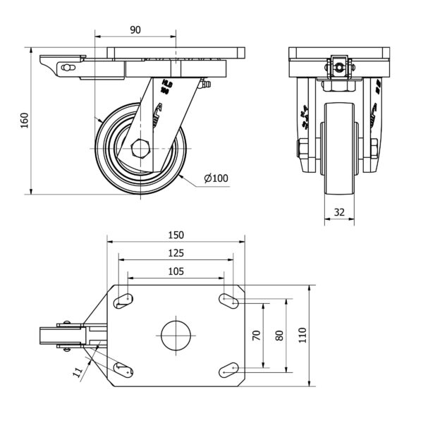 Rueda nylon-poliamida giratoria con bloqueo direccional Alex diametro 100 mm. modelo 2-3376