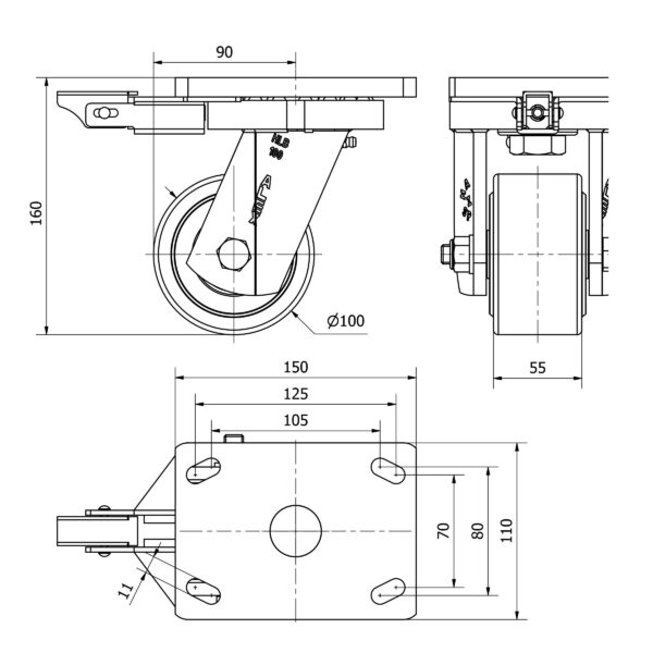 Rueda nylon-poliamida giratoria con bloqueo direccional Alex diametro 100 mm. modelo 2-4487 EAN 8422202244877