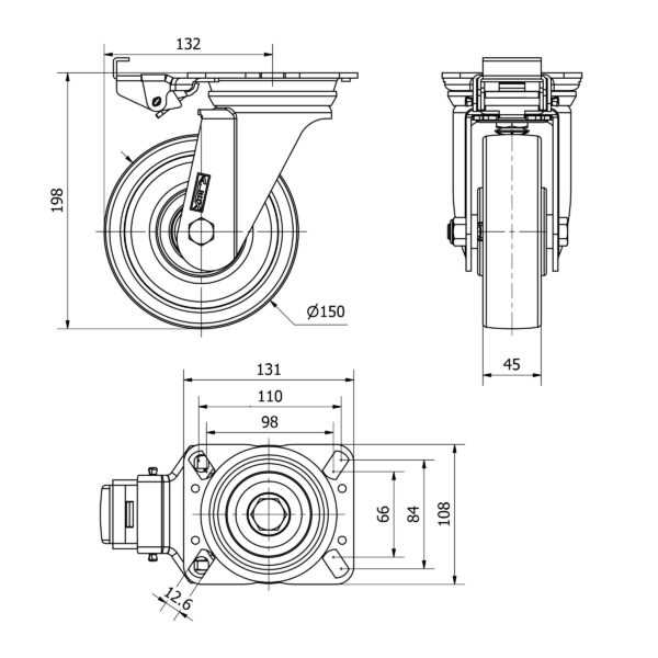 Rueda nylon-poliamida giratoria con bloqueo direccional Alex diametro 150 mm. modelo 2-3884