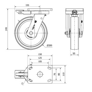 Rueda nylon-poliamida giratoria con bloqueo direccional Alex diametro 200 mm. modelo 2-3381