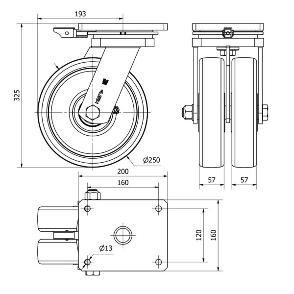 Rueda nylon-poliamida giratoria con bloqueo direccional Alex diametro 250 mm. modelo 2-3836