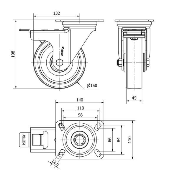 Rueda nylon-poliamida giratoria con freno Alex diametro 150 mm. modelo 2-3875