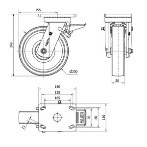 Rueda nylon-poliamida giratoria con freno Alex diametro 200 mm. modelo 2-1519