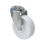 Las ruedas Alex serie TV-FT son ruedas de nylon extrafuerte, indicadas para soportar altas cargas hasta 800 Kg. Se utilizan en útiles de transporte logístico, exteriores, gradas móviles, contenedores, plataformas elevadoras, grúas móviles, mesas elevadoras, carros, empresas de alimentación, escaleras, máquinas de embalajes, cintas transportadoras, maquinaria ligera para la construcción, carpinterías metálicas, granjas agrícolas, cárnicas, textiles y polideportivos. FT: Ruedas especialmente indicadas para aplicaciones en industrias alimentarias y químicas. No manchan el suelo. Extrafuertes. Alta resistencia a golpes y choques.