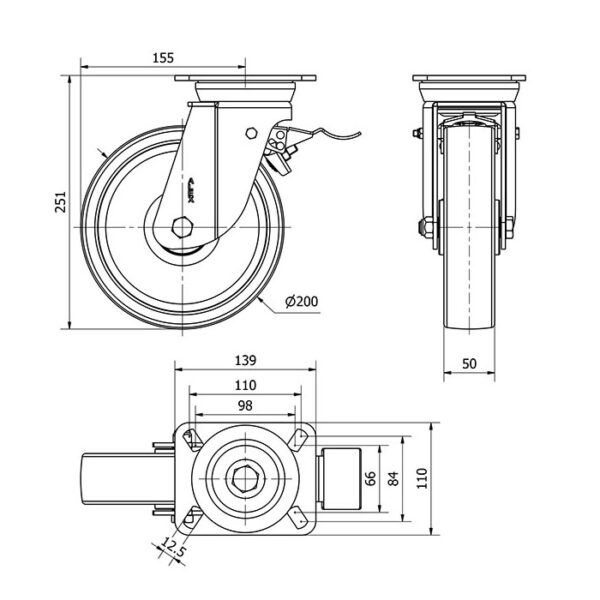 Rueda nylon-poliamida giratoria con freno Alex diametro 200 mm. modelo 2-1828