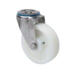La serie de ruedas Alex ZVI INOX-FT son de nylon extrafuerte, con todos sus componentes de acero inoxidable (AISI-304), indicadas para soportar cargas hasta 600 Kg. Se utilizan en exteriores, carros de transporte de alimentación, cantinas, comedores, restaurantes, empresas de alimentación, máquinas de embalajes, cintas transportadoras, construcciones inoxidables, maquinaria ligera para la construcción, contenedores, jaulas de transporte, granjas avícolas, químicas, cadenas alimentación, frigoríficos, arcones y congeladores. FT: Ruedas especialmente indicadas para aplicaciones en industrias alimentarias y químicas. No manchan el suelo. Extrafuertes y alta resistencia a golpes y choques.