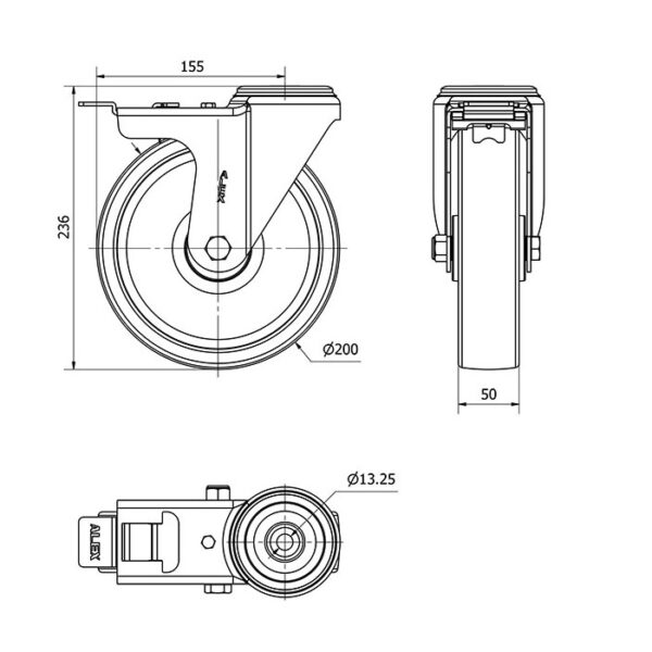 Rueda nylon-poliamida giratoria con freno Alex diametro 200 mm. modelo 2-2711