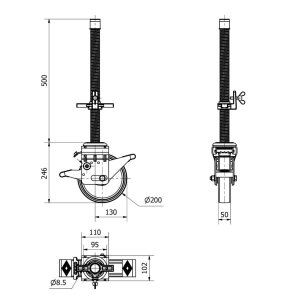 Rueda nylon-poliamida giratoria con freno Alex diametro 200 mm. modelo 2-3787