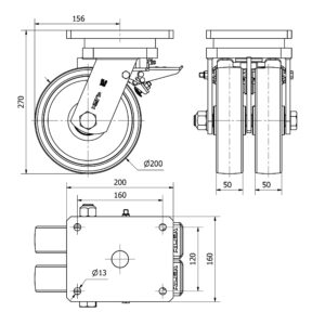 Las ruedas Alex serie HLG-FT son ruedas dobles de nylon extrafuerte, indicadas para soportar altas cargas hasta 2.500 Kg. Se utilizan en útiles de transporte logístico, grúas que transportan materiales pesados, así como plataformas elevadoras y gradas móviles, principalmente en el sector aeronáutico, ferroviario y automoción. FT: Ruedas especialmente indicadas para aplicaciones en industrias alimentarias y químicas. No manchan el suelo. Extrafuertes. Alta resistencia a golpes y choques.