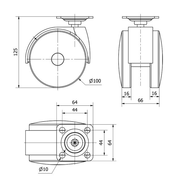 Rueda poliamida giratoria Alex diametro 100 mm. modelo 4-1320