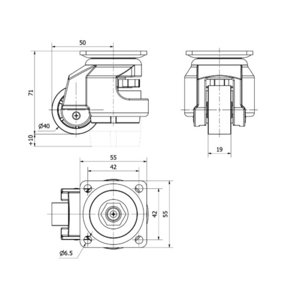 Rueda poliamida giratoria Alex diametro 42 mm. modelo 2-4552