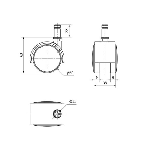 Rueda poliamida giratoria Alex diametro 50 mm. modelo 1-0277 EAN 8422202102771