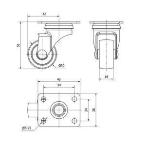 Rueda poliamida giratoria Alex diametro 60 mm. modelo 1-0332 EAN 8422202103327