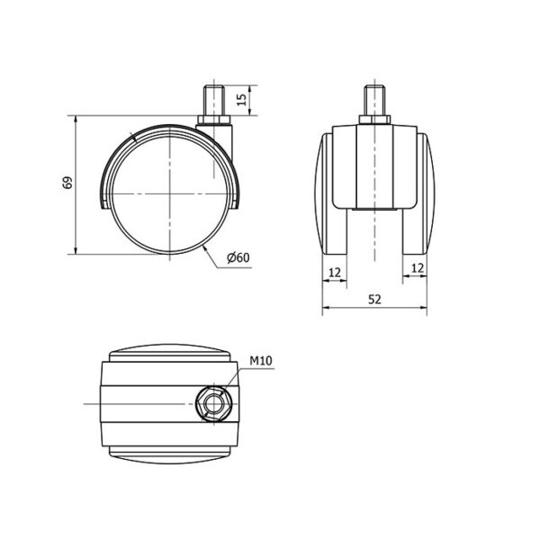 Rueda poliamida giratoria Alex diametro 60 mm. modelo 1-0332