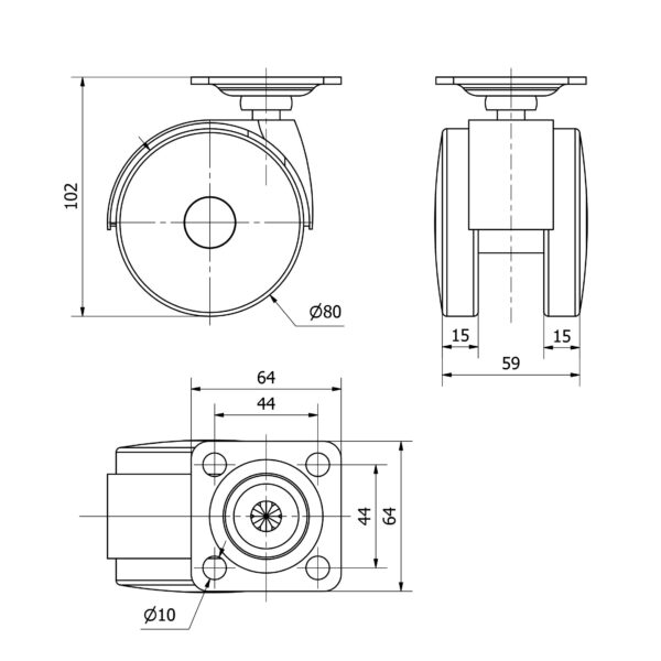Rueda poliamida giratoria Alex diametro 80 mm. modelo 4-1319