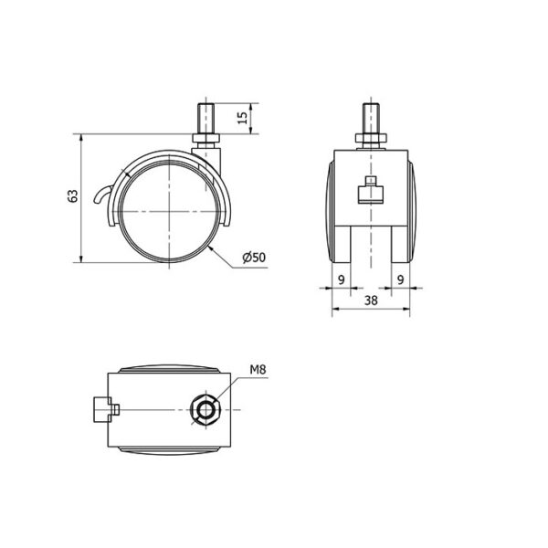 Rueda poliamida giratoria con freno Alex diametro 50 mm. modelo 1-0405
