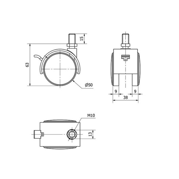 Rueda poliamida giratoria con freno Alex diametro 50 mm. modelo 1-0406