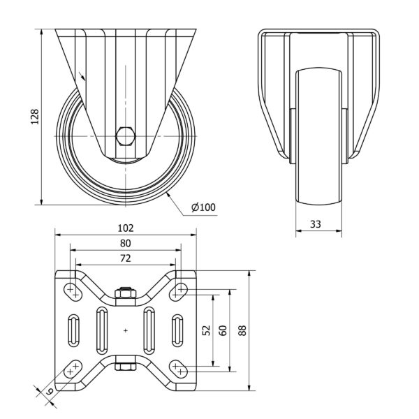 Rueda poliamix fija Alex diametro 100 mm. modelo TW0048 EAN 8422202000480