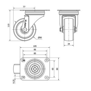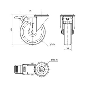 Rueda poliamix fija Alex diametro 125 mm. modelo 2-1165