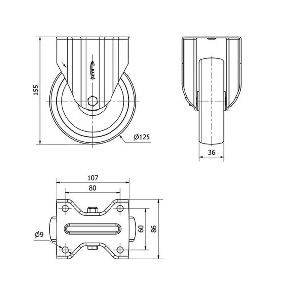 Rueda poliamix fija Alex diametro 125 mm. modelo 2-0240