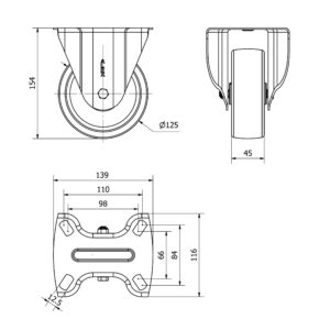 Rueda poliamix fija Alex diametro 125 mm. modelo 2-2284