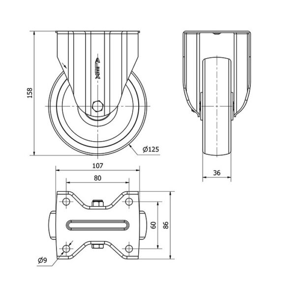 Rueda poliamix fija Alex diametro 125 mm. modelo 2-4919