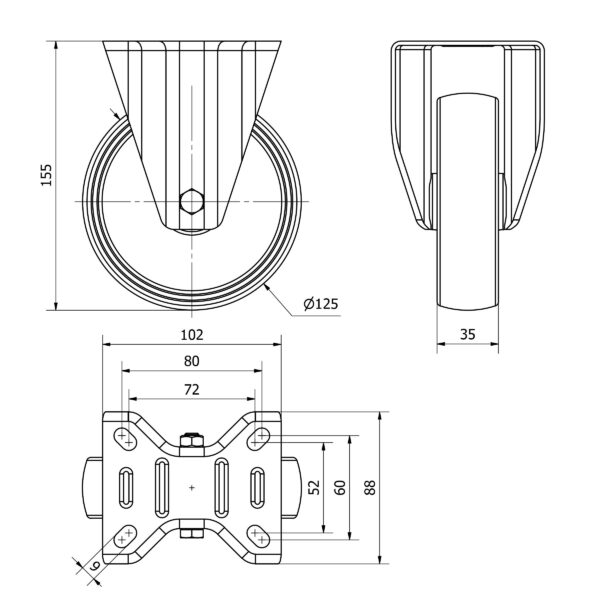 Rueda poliamix fija Alex diametro 125 mm. modelo TW0203 EAN 8422202002033