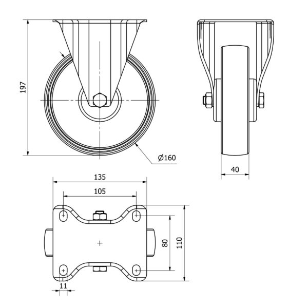 Rueda poliamix fija Alex diametro 160 mm. modelo TW0050