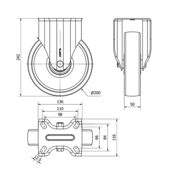 Rueda poliamix fija Alex diametro 200 mm. 2-0200