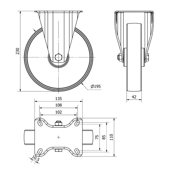Rueda poliamix fija Alex diametro 200 mm. modelo TW0205