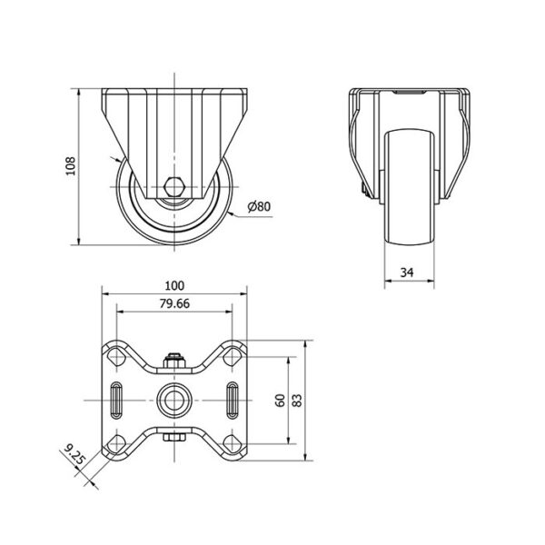Rueda poliamix fija Alex diametro 80 mm. modelo 2-3080