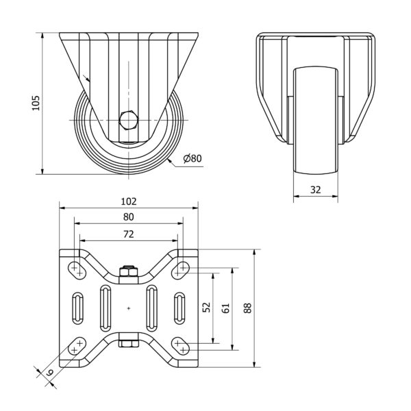 Rueda poliamix fija Alex diametro 80 mm. modelo TW0047 EAN 8422202000473
