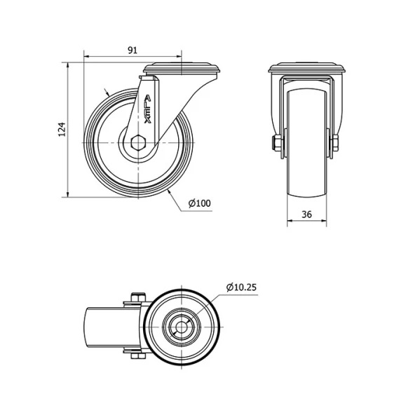 Rueda poliamix giratoria Alex diametro 100 mm. 2-0126