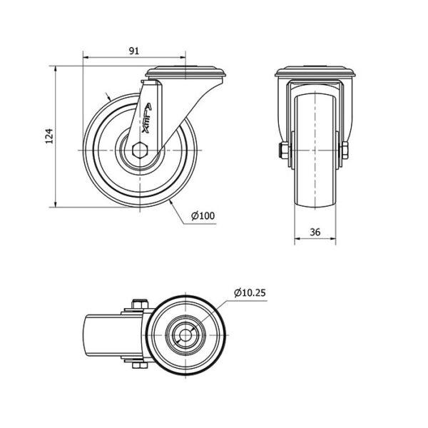 Rueda poliamix giratoria Alex diametro 100 mm. modelo 2-2799