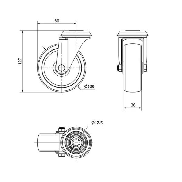 Rueda poliamix giratoria Alex diametro 100 mm. modelo 2-3087