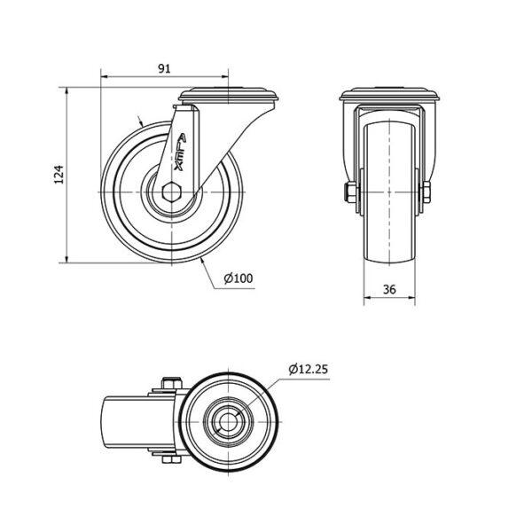 Rueda poliamix giratoria Alex diametro 100 mm. modelo 2-4149