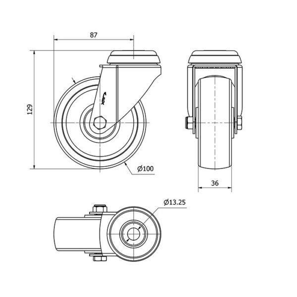 Rueda poliamix giratoria Alex diametro 100 mm. modelo 2-4800