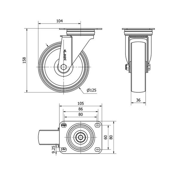 Rueda poliamix giratoria Alex diametro 125 mm. 2-0135