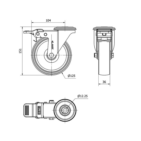 Rueda poliamix giratoria Alex diametro 125 mm. 2-0139