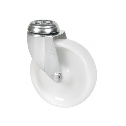 La serie de ruedas Alex BH-BP son ruedas de poliamix blanco, indicadas para soportar cargas hasta de 125 kg. Se utilizan en expositores, muebles, estanterías, taburetes, percheros, carros de hostelería, ebanisterías, stands, carros de limpieza, mesas de ordenador, pequeño mobiliario, etc.; ya que son indeformables y resistentes y con un desplazamiento y arranque fácil.