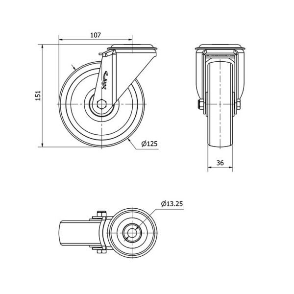 Rueda poliamix giratoria Alex diametro 125 mm. modelo 2-2238