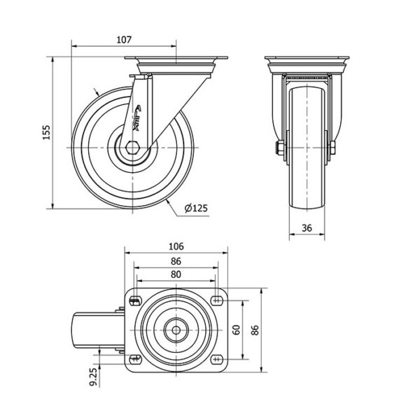Rueda poliamix giratoria Alex diametro 125 mm. modelo 2-2776 EAN 8422202227764