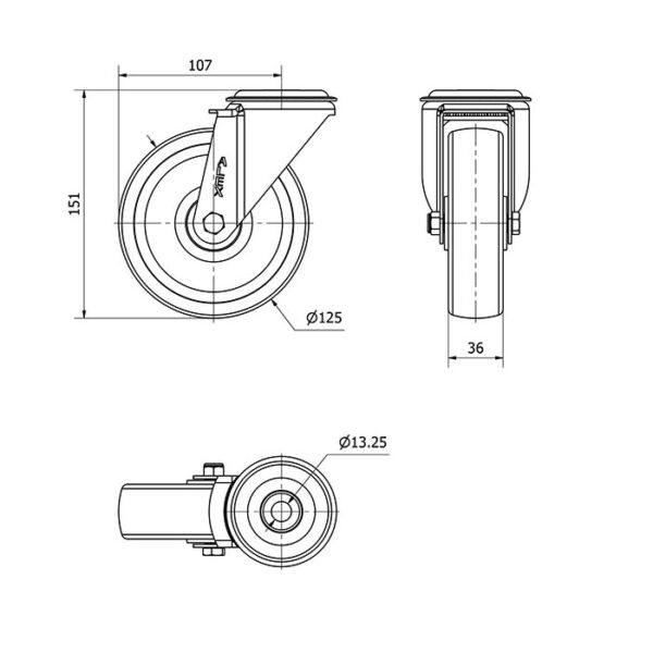 Rueda poliamix giratoria Alex diametro 125 mm. modelo 2-2801