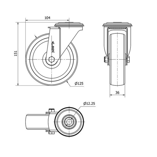 Rueda poliamix giratoria Alex diametro 125 mm. modelo 2-4946