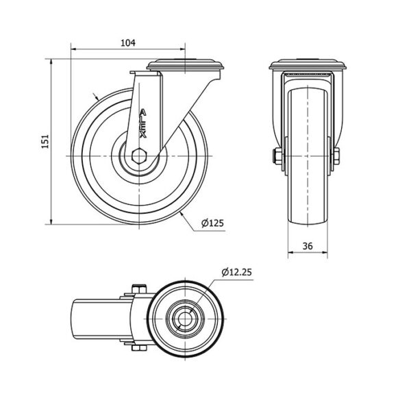 Rueda poliamix giratoria Alex diametro 125 mm. modelo 2-4951