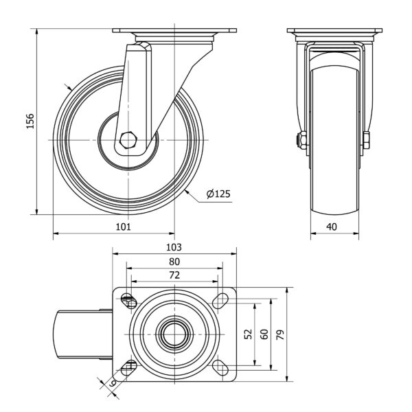 Rueda poliamix giratoria Alex diametro 125 mm. modelo TW0044 EAN 8422202000442