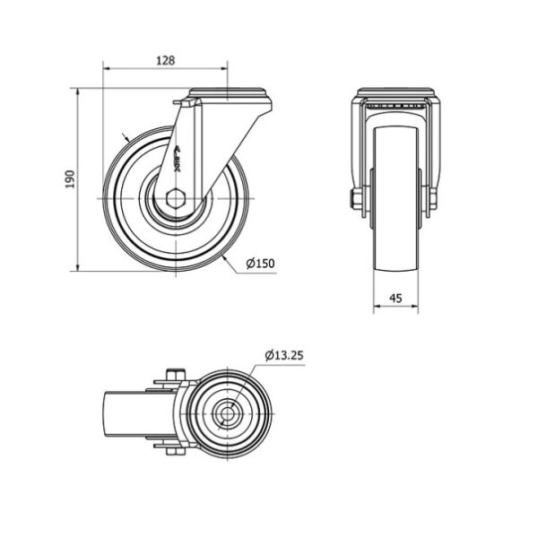 Rueda poliamix giratoria Alex diametro 150 mm. 2-0192