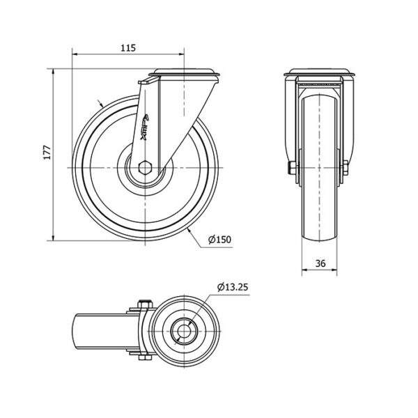 Rueda poliamix giratoria Alex diametro 150 mm. modelo 2-4268